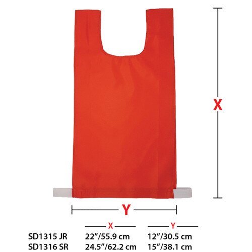 Hefty nylon pinnie with elastic one side.perfect for indoor use and sized to accommodate grades 8 to adults. 4 Colours to choose from. Red, green, yellow or blue.